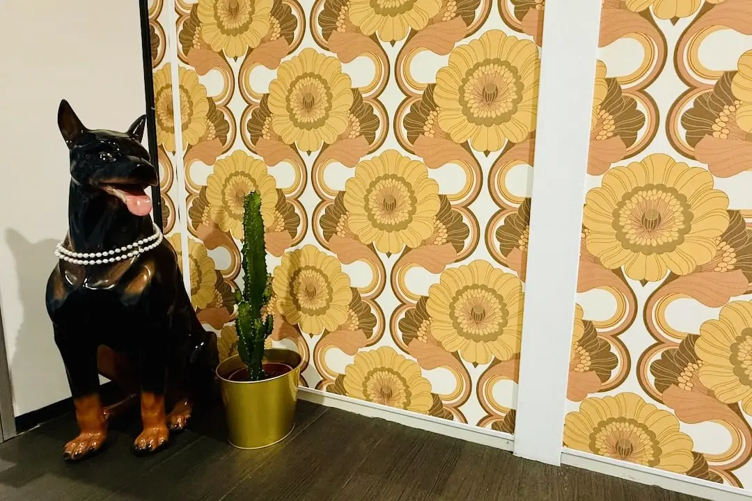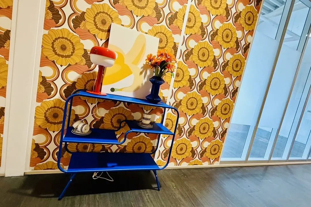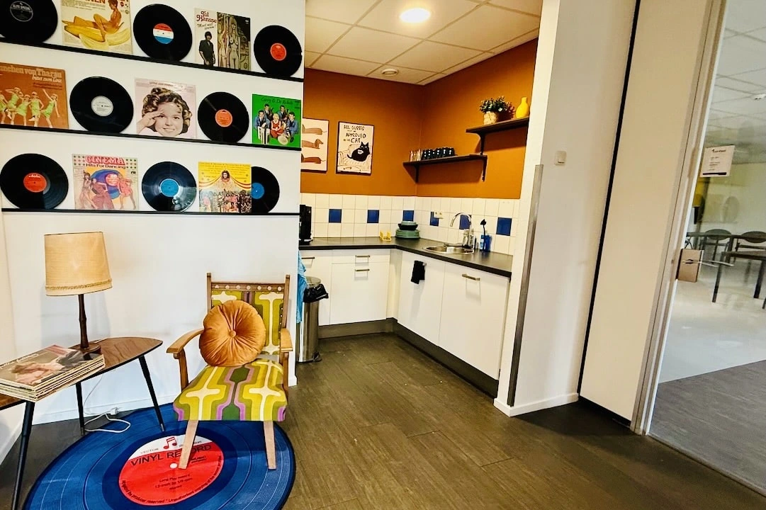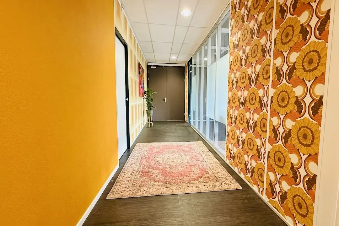 Ons pand is voorzien van een stoere industriële look gecombineerd met warme jaren ’70 details. Je merkt het in de hoge plafonds, zichtbare buizen, retrobehang, warme kleuren, en zorgvuldig gekozen elementen.
